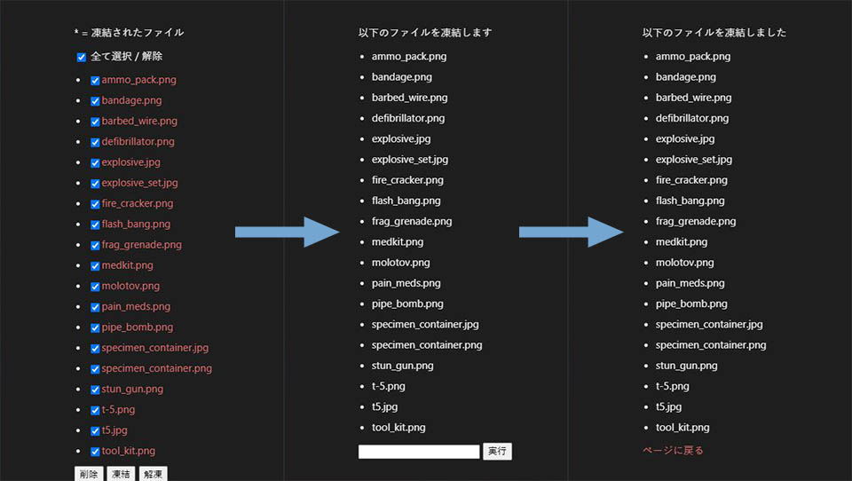 - 凍結中のファイルは一括操作画面にマーク付きで表示される