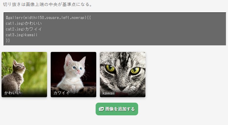 #gallery([オプション]){{