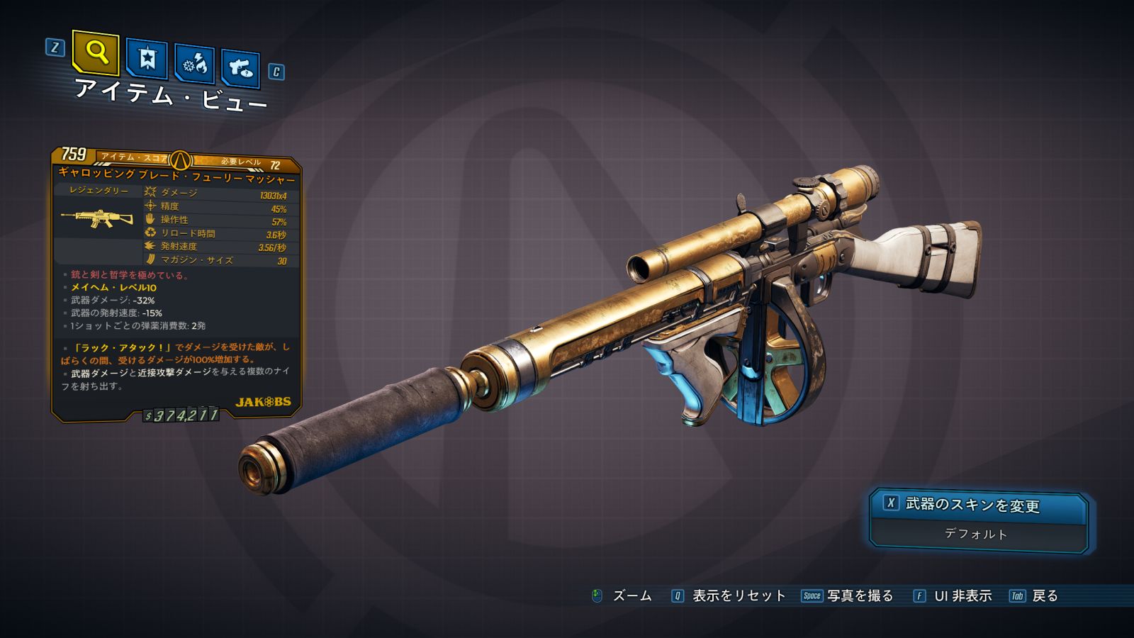 | Part_AR_JAK_Bolt_BladeFury | 発射速度: +10 | | ブレード・フューリー |
