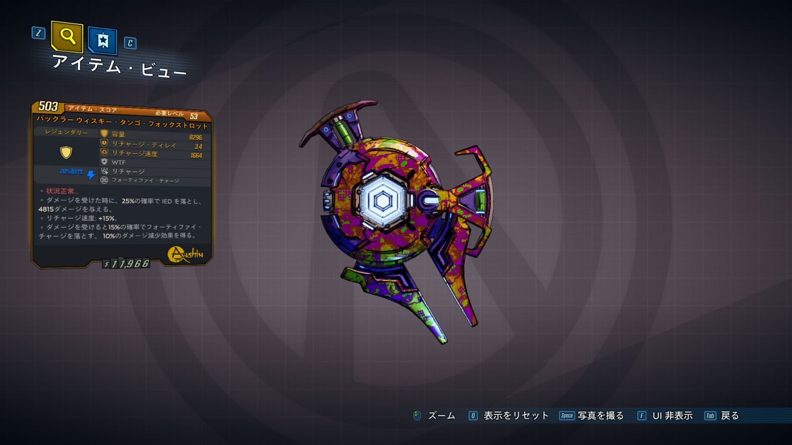 カテゴリ:アイテム シールド レジェンダリー アンシン ワールドドロップ