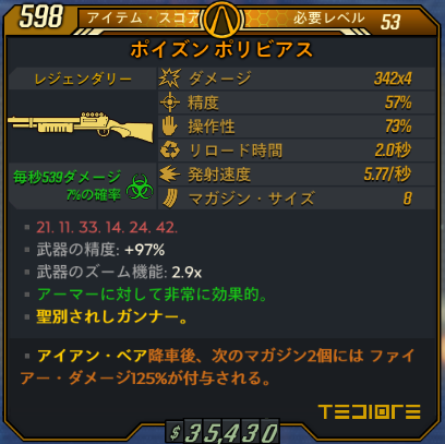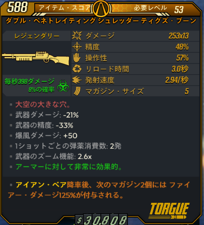 そもそも射撃ビルド向きではないですね。青赤で試したのですがマガジンも小さいのできっちり敵に当てないとあっという間にリロードすることになります。これなら破壊の手段のシナジーを捨ててサム・フォー・ザ・ロードで短時間にぶち込む運用をした方が幾分かマシまであると思います。