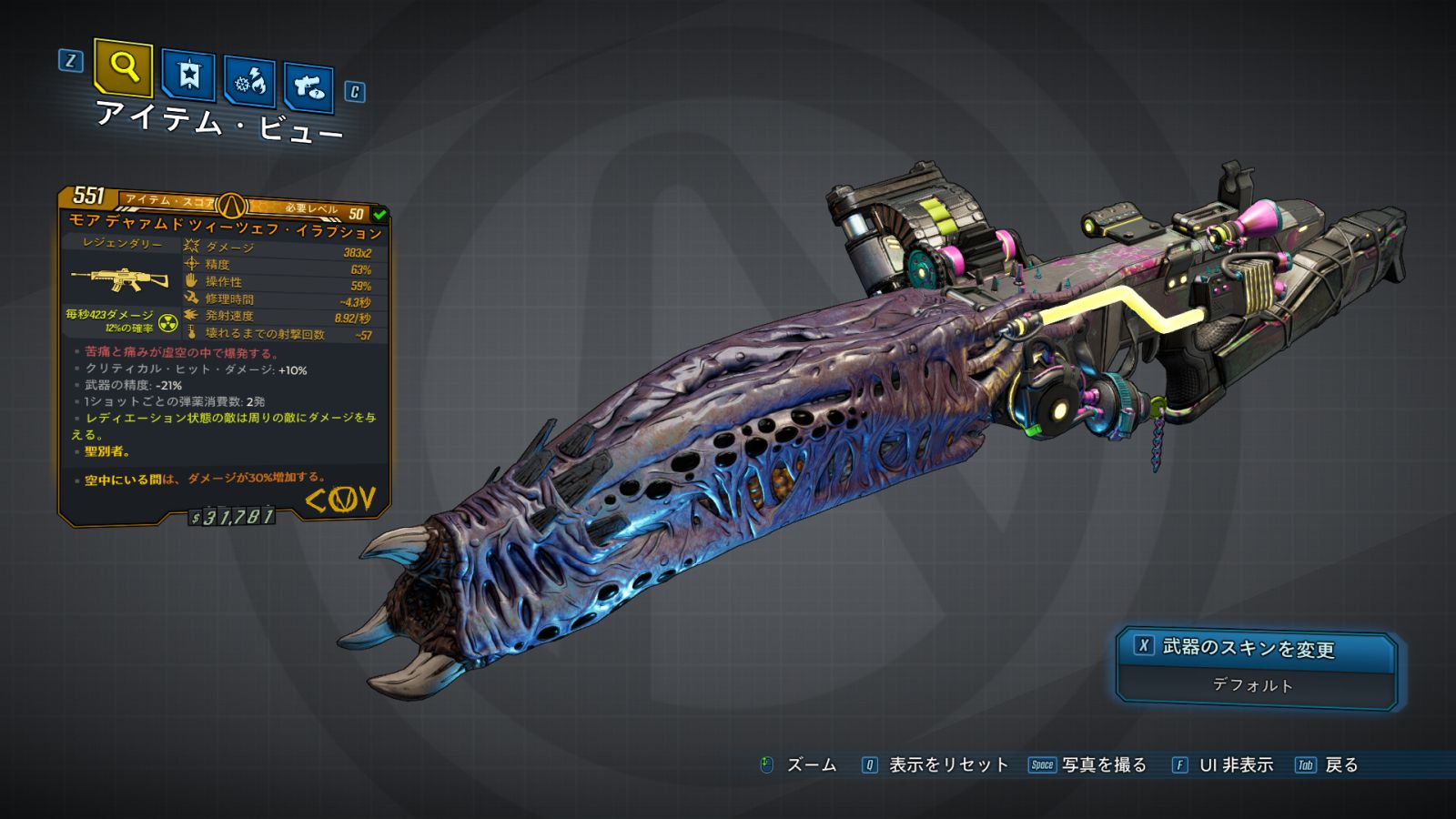 | ・武器ダメージ: +% ・武器のズーム機能: x |