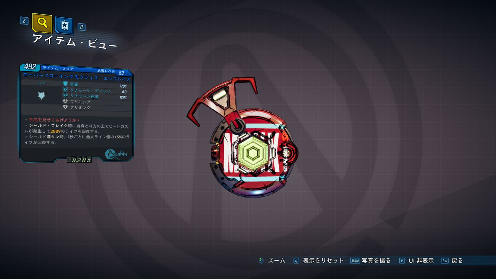 | ・シールド・ブレイク時に自身と味方の上でヒールガズムが発生して77のライフを回復する。 ・シールド満タン時、1秒毎に最大ライフ値の+5%のライフが回復する。 |