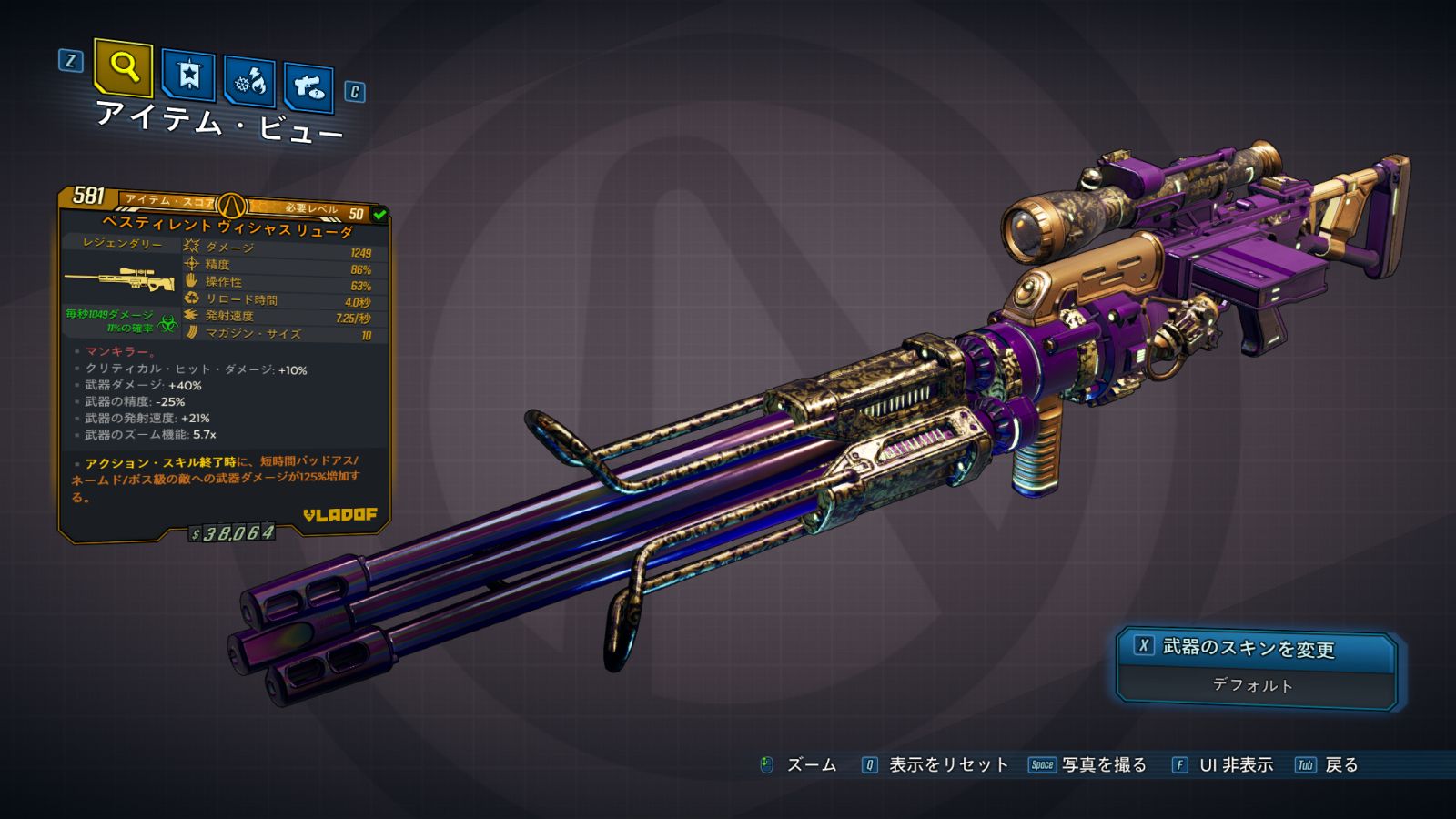 | ・クリティカル・ヒット・ダメージ: +10% ・武器のズーム機能: 6.8x |