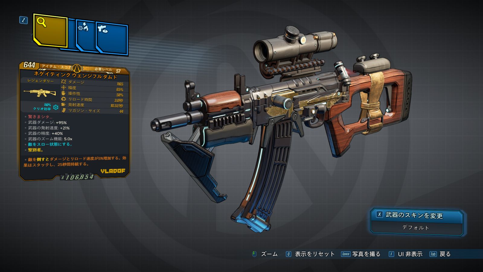 | ・武器の発射速度: +% ・武器のズーム機能: x |