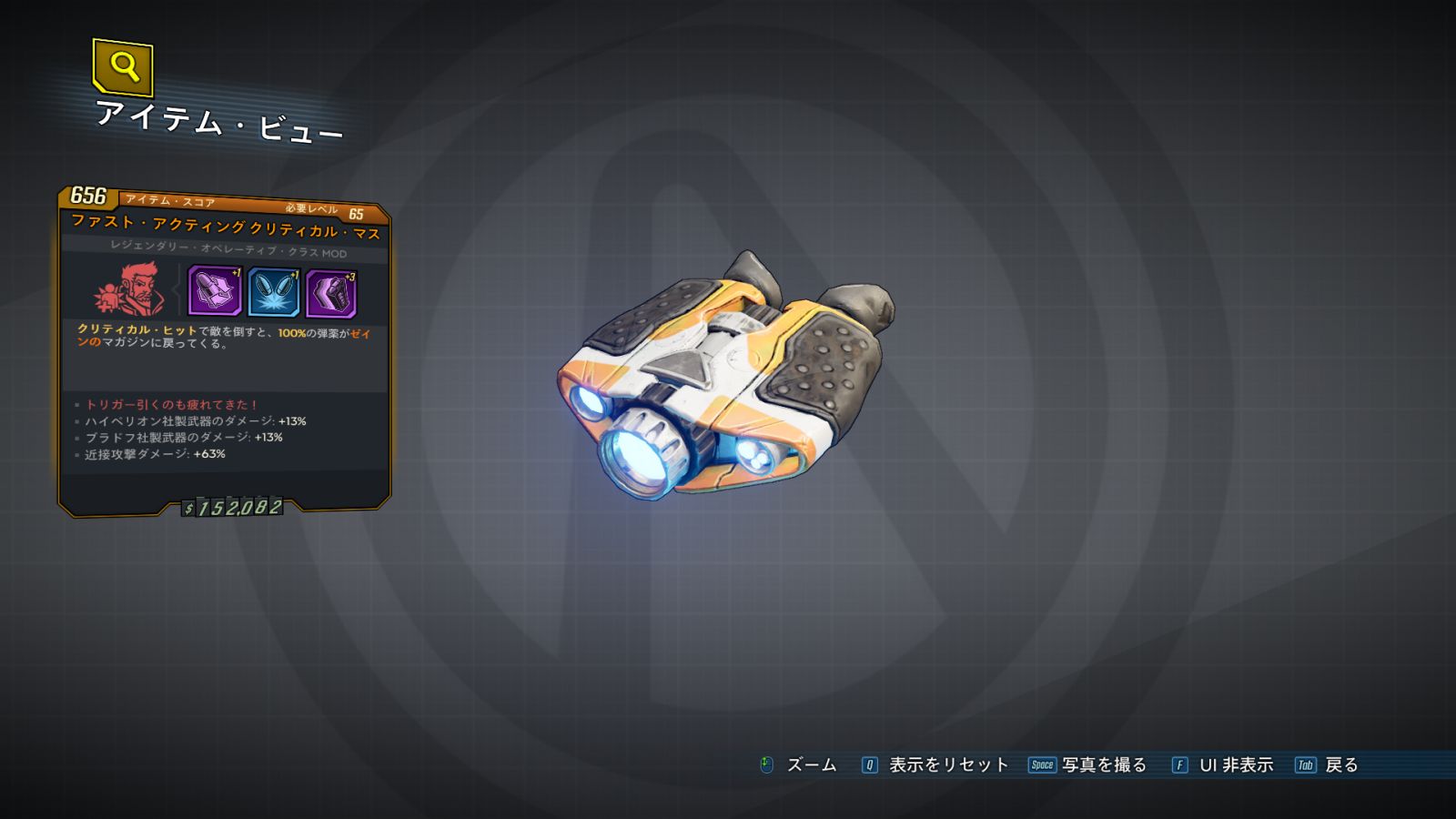 DLC 6:ディレクターズ・カットでヒャッハーだ!でシュルーティング・スプリーの報酬に追加された新装備。