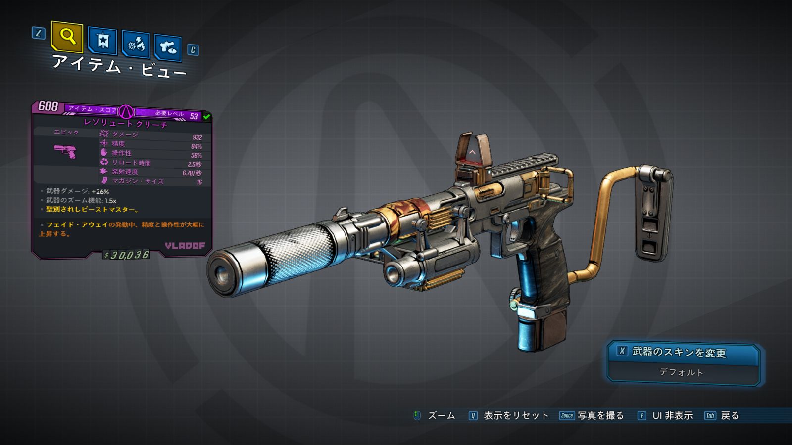 3つのブラドフ製コモンピストルの中では最もダメージが高く精度が高いため、多少敵が遠くにいてもダメージを与えやすい。