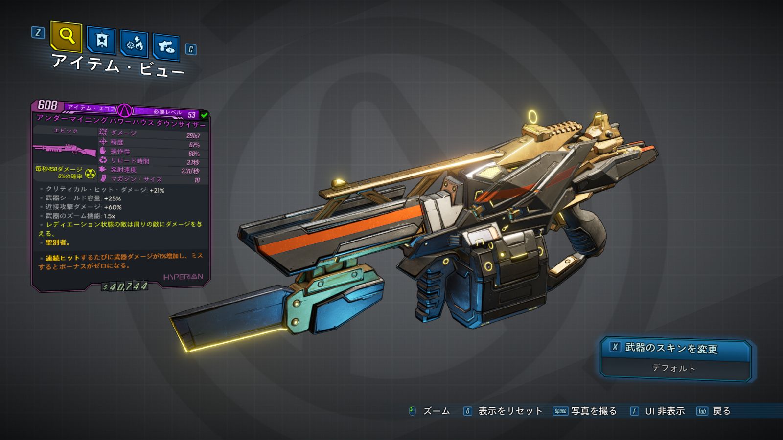 全体的にバランスの取れた性能をしているが、ハイペリオン社製武器の宿命としてリロードが遅いのがネック。