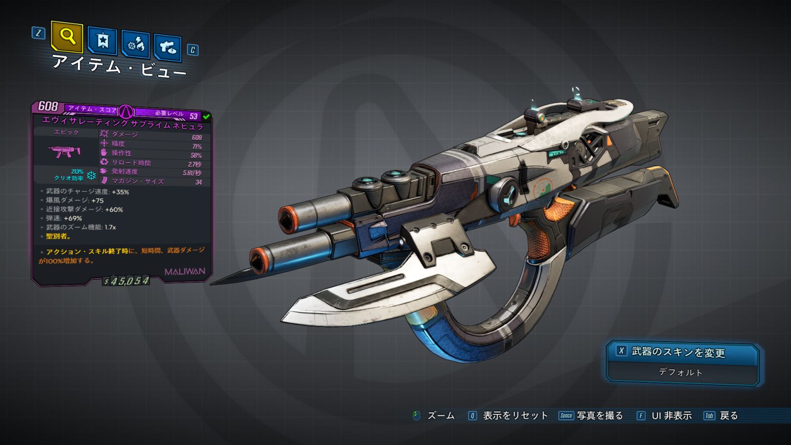 連射速度は低いが代わりに素の武器ダメージが少し高く、また、継続ダメージが他のSMGよりも高くなりやすい。