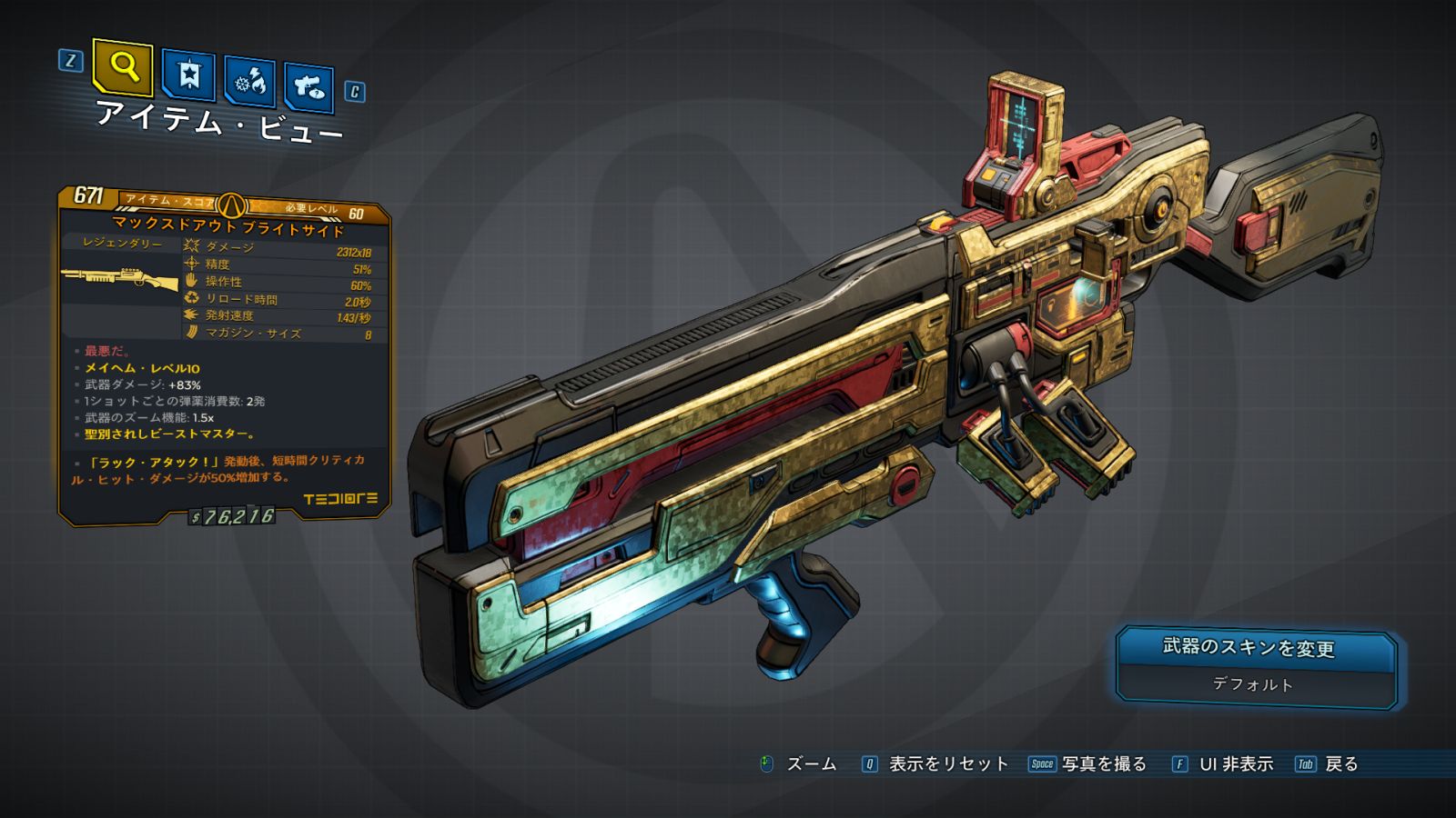 | Part_SG_TED_Barrel_Brightside | ダメージ: +60% | | ブライトサイド |