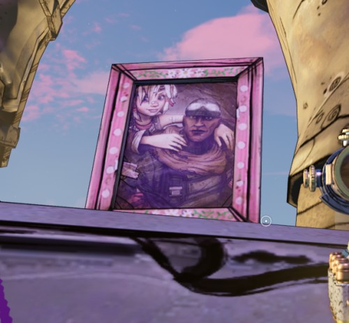 像の足元には様々なキャラクターの寄せ書きやティナとローランドが一緒に写っている写真などがおいてある。