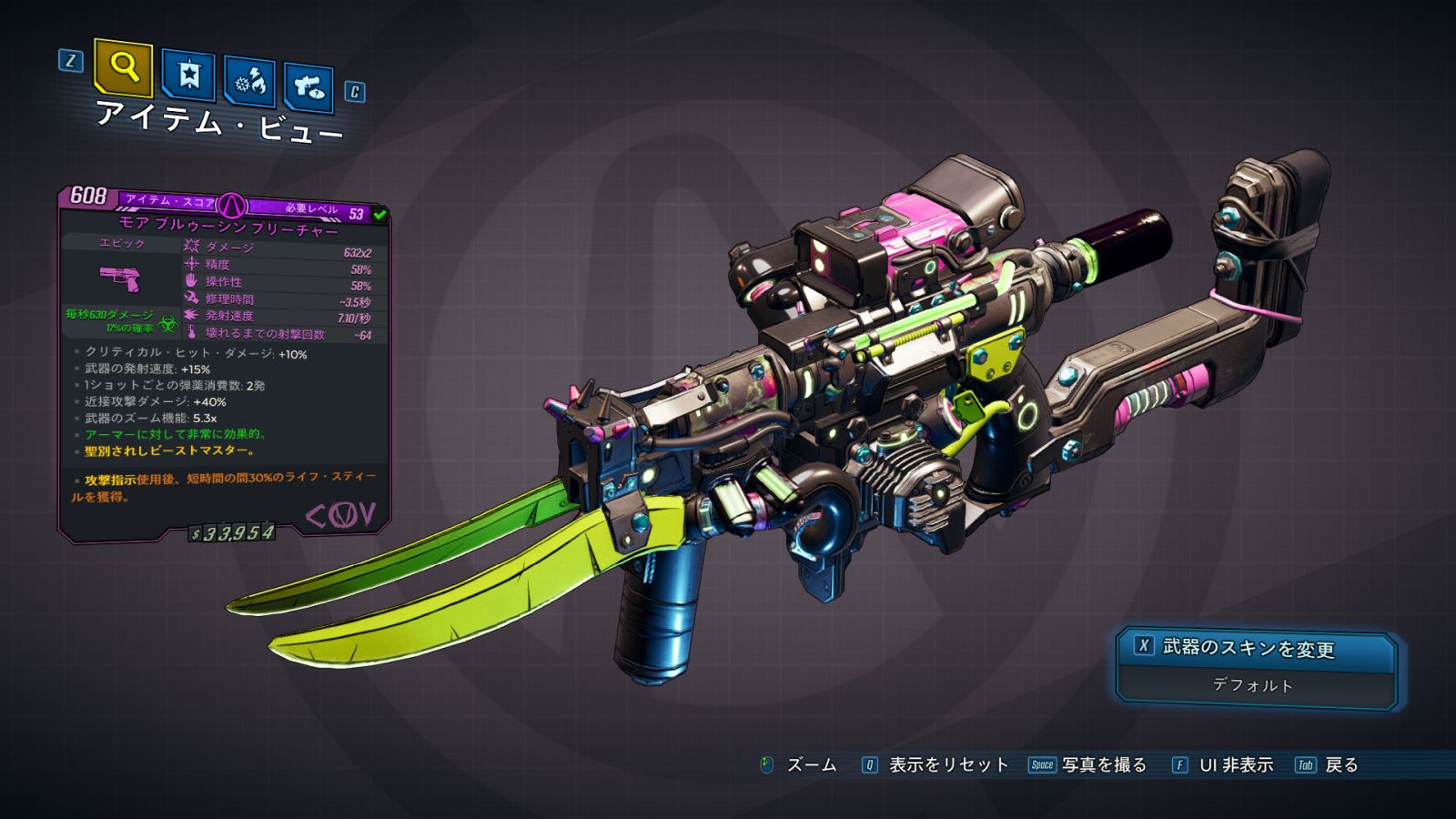 | Part_PS_COV_Accessory_05 | 1発ごとの発熱: -15% 近接攻撃ダメージ: +80% | 照準の揺れ: +10% ダメージ: -5% | |