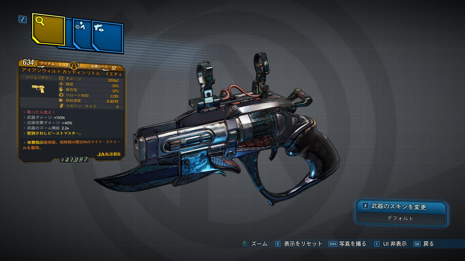 単発火力も通常のジェイコブス社製ピストルと比べて高いが、代わりにリロードが遅い。