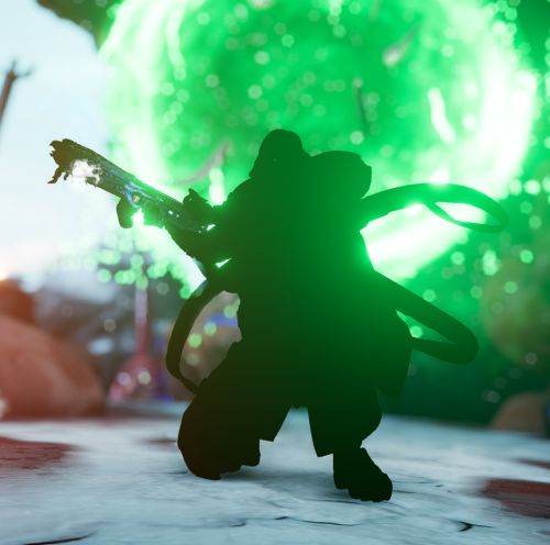 出現場所に行くと緑色のポータルを通って中空に出現する。
