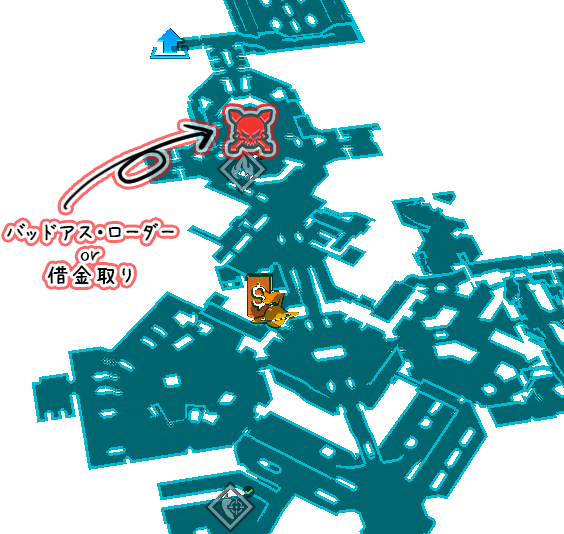 この借金取りを倒すことで、実績・トロフィーにある"さまよう借金取りを倒す"が達成される。