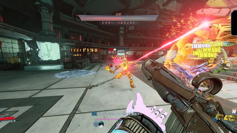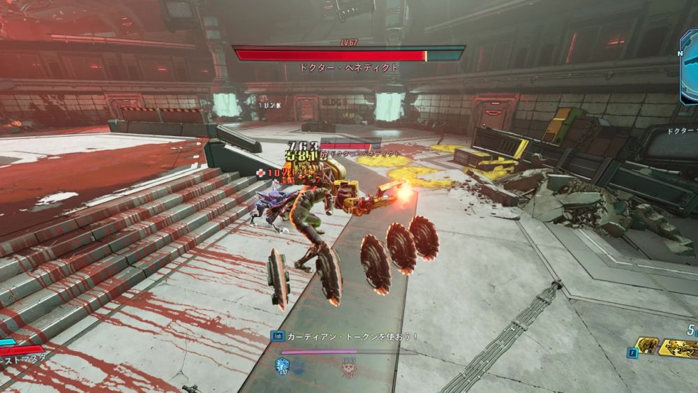 ショックレーザーにはシールドを吸収する能力があり、プレイヤーが受けたダメージの分だけドクター・ベネディクトのシールドが回復してしまう。