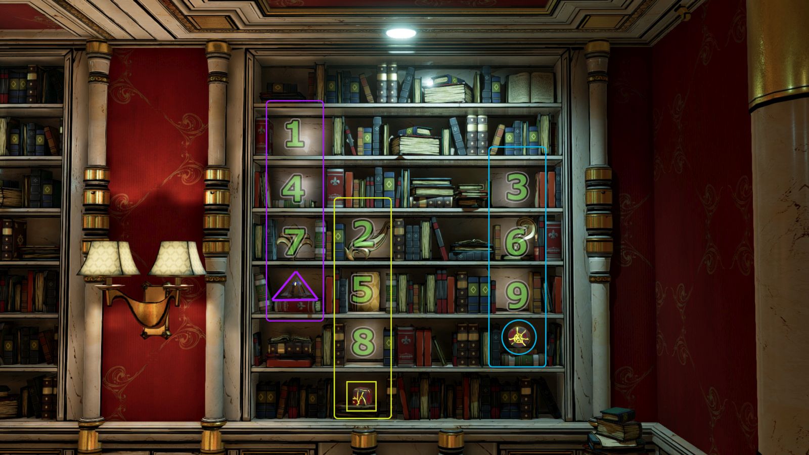 また、デスクの後ろにある本棚には3x3マスで1-9の数字が表示される。