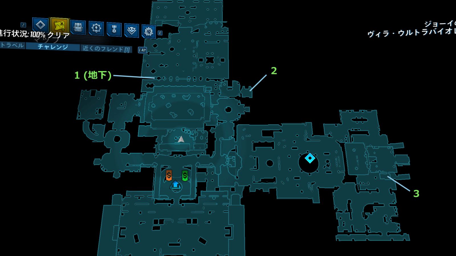 - 座標を30個集めると、モーリスがカルテルの本拠地『ヴィラ・ウルトラバイオレット』へのポータルを開いてくれる。