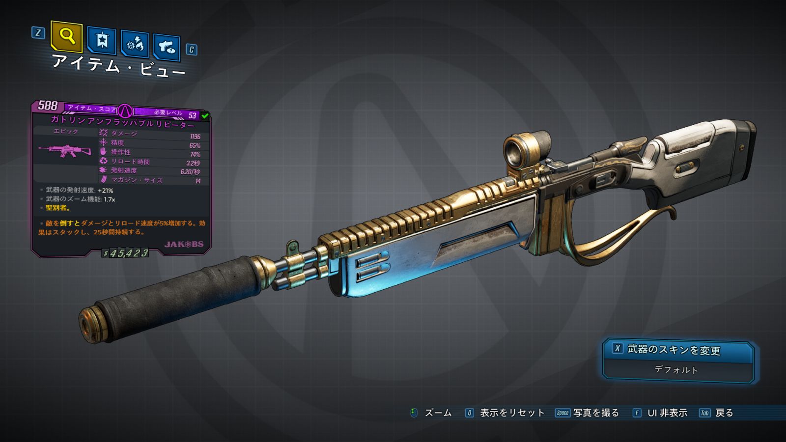 | Part_AR_JAK_Mag_02 | ダメージ: +10% | | 10発装填マガジン |
