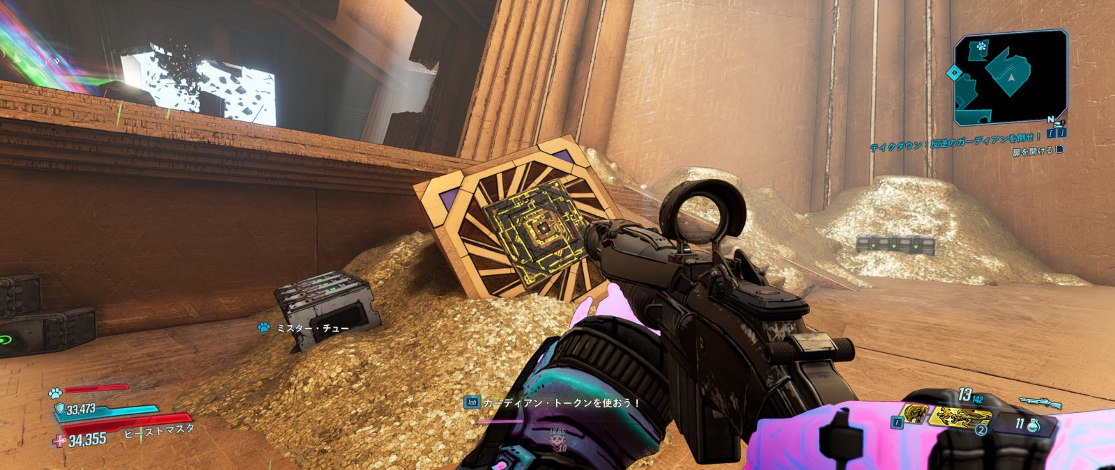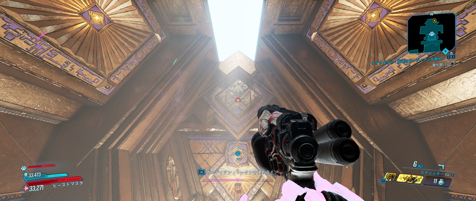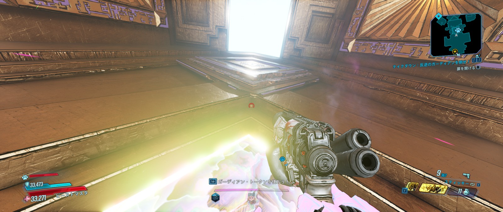 この隠し部屋の中にはさらに小さなシンボルが12個隠されており、これを全て撃ち抜くと入り口上にある小部屋に入れるようになる。