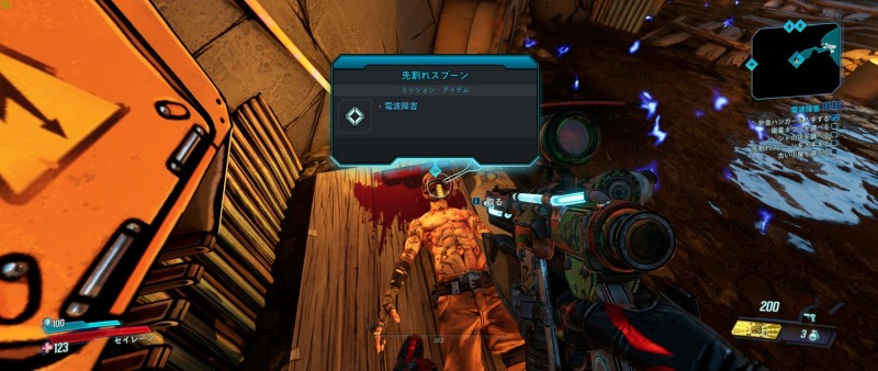 電流を流していた機械の前に横たわっているサイコの死体から先割れスプーンを引き抜いてゲット。
