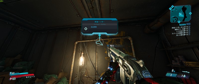 奥にある機械の丸い部分を撃つことで電流を止めることができる。