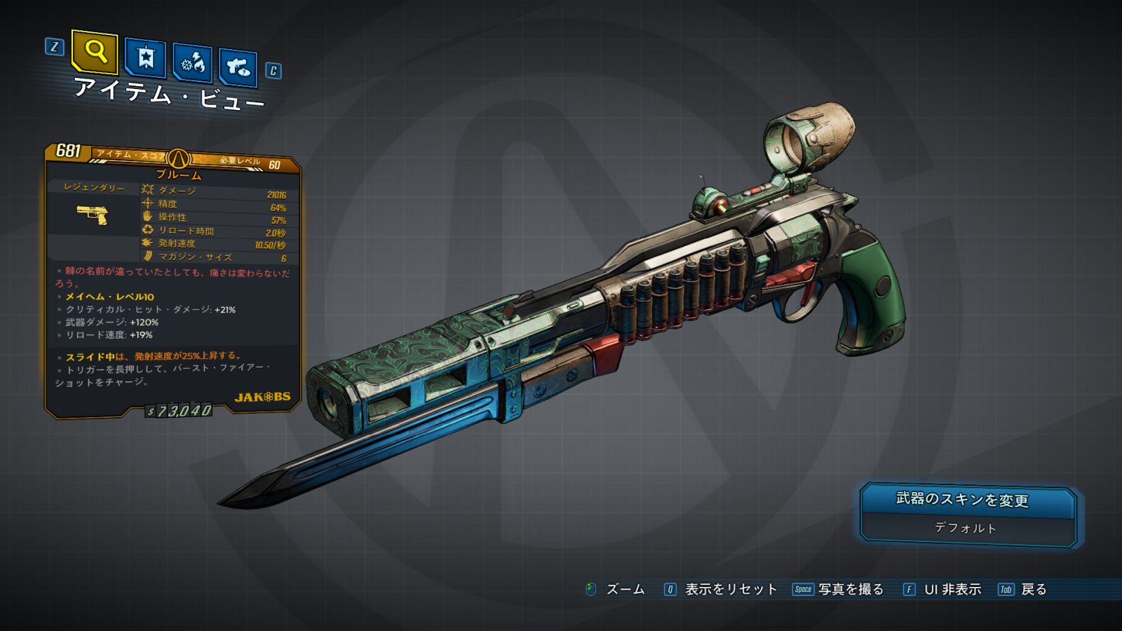 カテゴリ:アイテム 武器 ピストル レジェンダリー ジェイコブス 荒野のヴォルト・ハンター