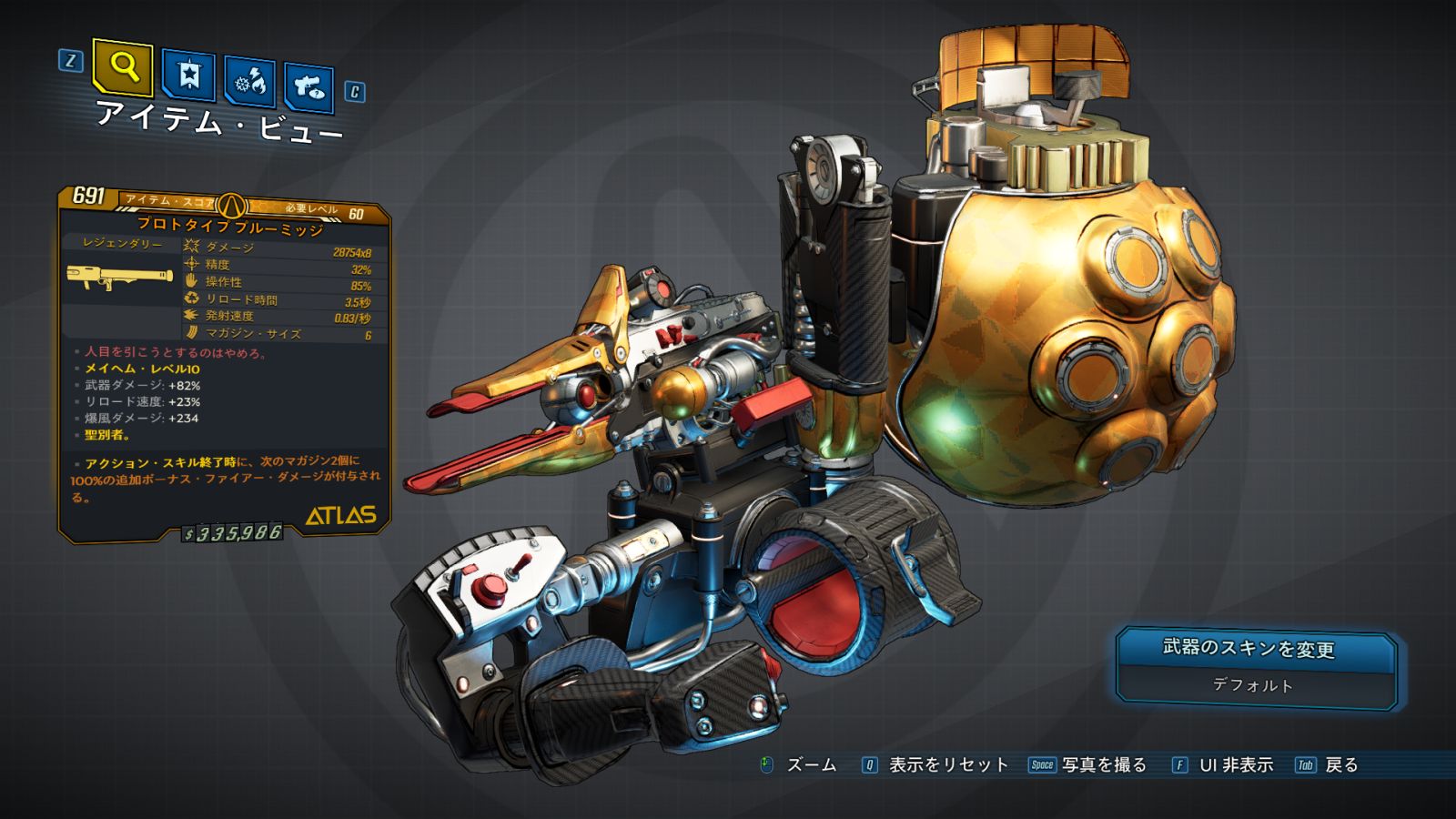 カテゴリ:アイテム 武器 重火器 レジェンダリー アトラス ワールドドロップ 荒野のヴォルト・ハンター