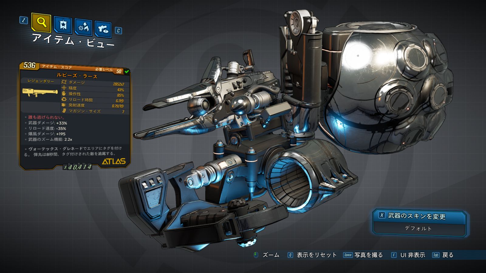 トラッカー・グレネードが特異点を発生させるヴォーテックス・グレネードになっている。
