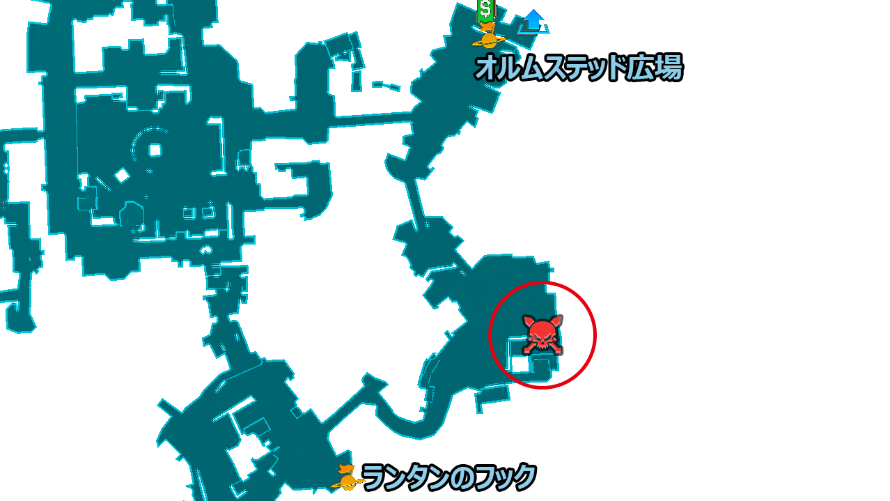 ファスト・トラベル地点(復活地点)から階段を登って左の突き当りまで進み、