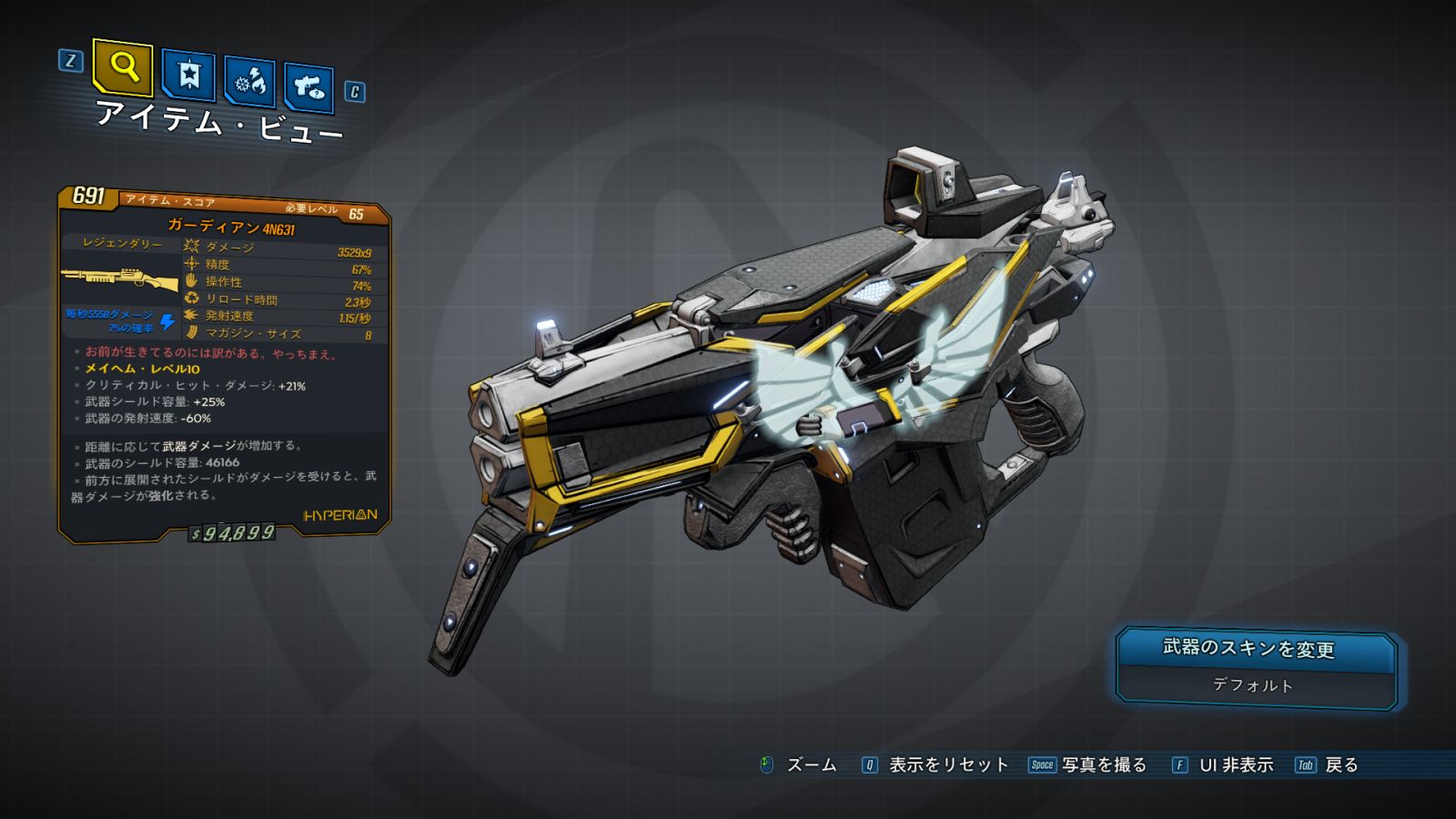 カテゴリ:アイテム 武器 ショットガン レジェンダリー ハイペリオン ディレクターズ・カット フォールン・ヒーローズ
