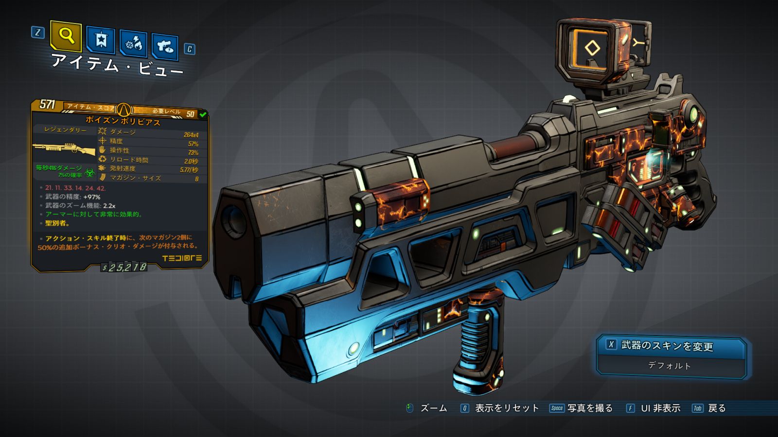 | ・武器ダメージ: +% ・武器の精度: +% ・武器のズーム機能: x |