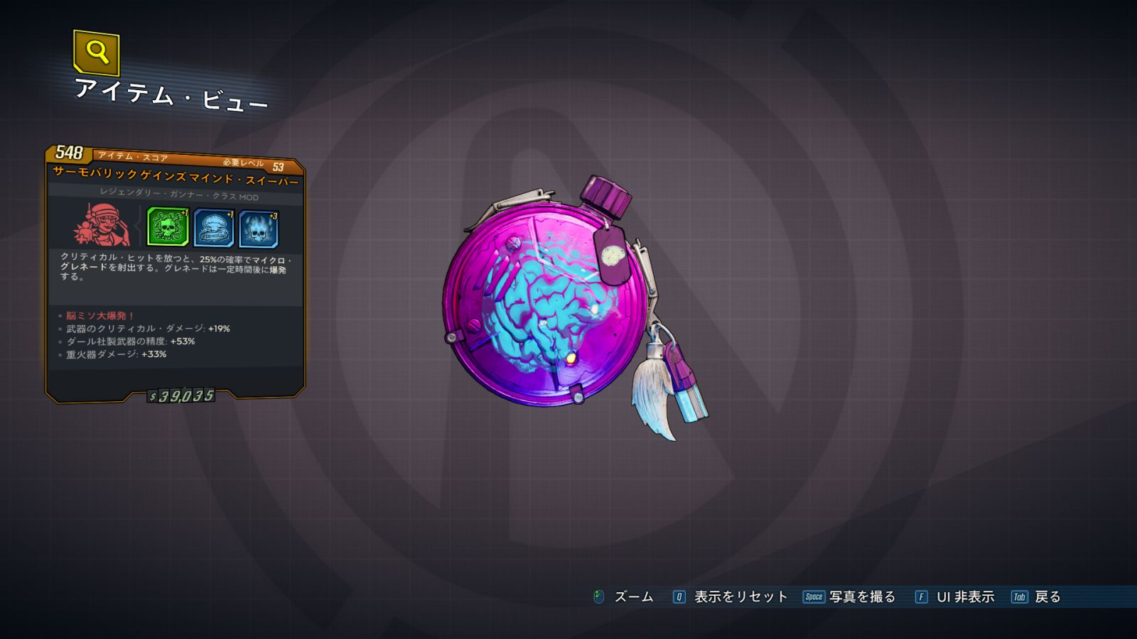 カテゴリ:アイテム クラスMOD レジェンダリー ガンナー ワールドドロップ