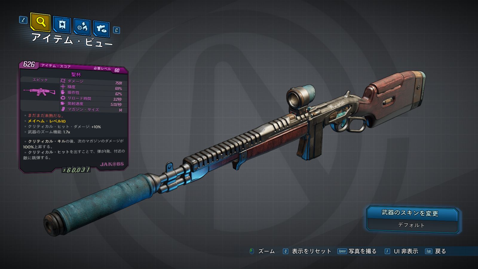 カテゴリ:アイテム 武器 アサルト・ライフル ユニーク ジェイコブス 荒野のヴォルト・ハンター