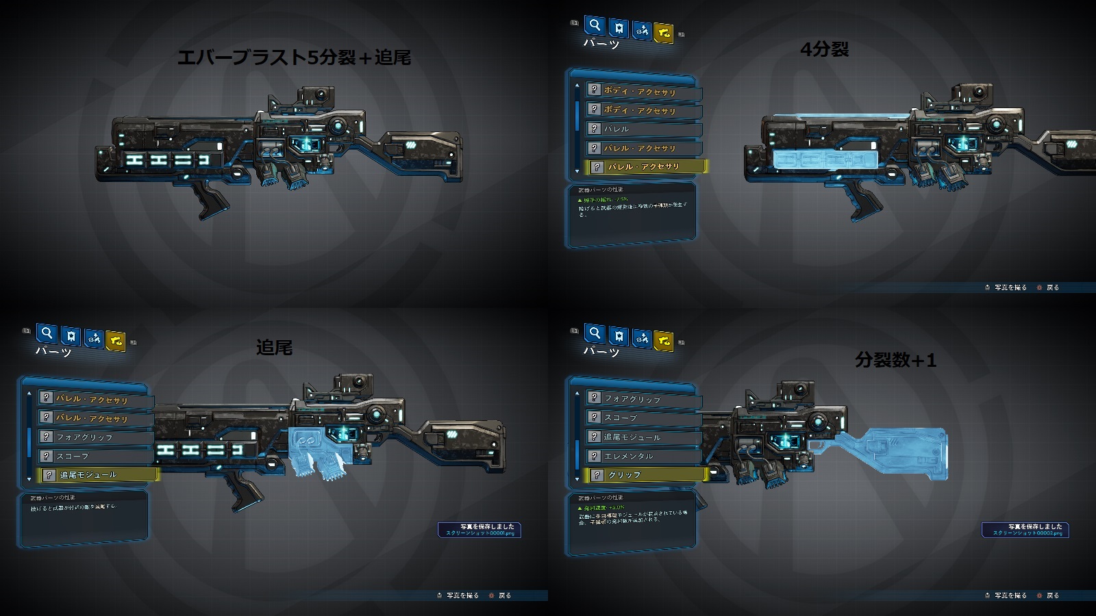 • ようやっと5分裂+追尾のエバーブラスト引けたんだけど、自分の環境だと5分裂+追尾のキーンファイアー(テディSMG)の方がダメでるな。上でエバーブラストのペレット数が21って書いてあるけど、自分の引いたのは8しかないし、もしかしてさらにペレット数も厳選しなきゃダメ? -- 2019-10-22 (火) 21:18:59
