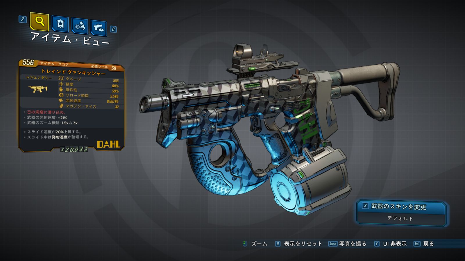 ・武器の発射速度: +21% ・武器のズーム機能: x & x |