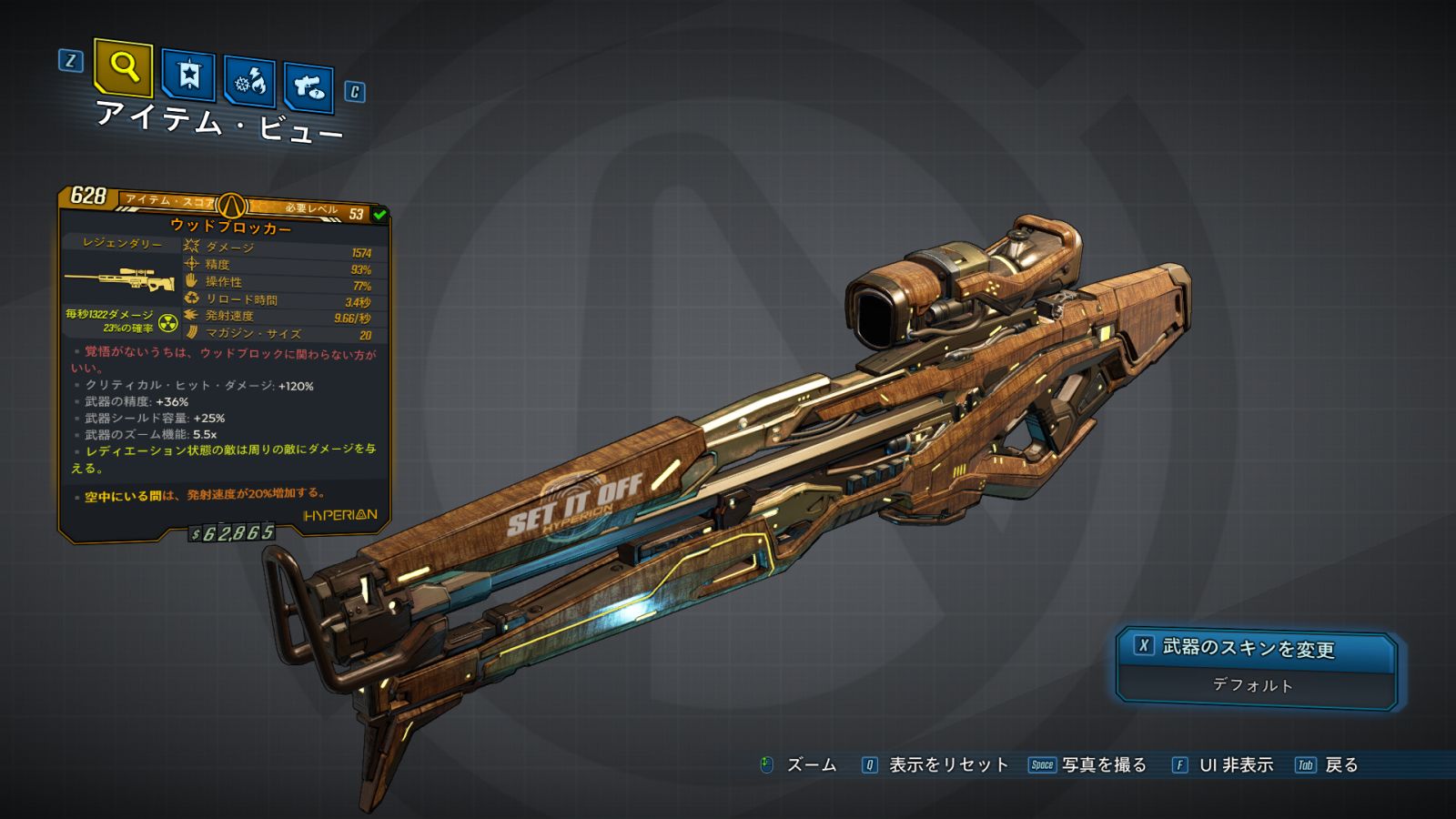 | ・武器シールド容量: +% ・武器のズーム機能: x |