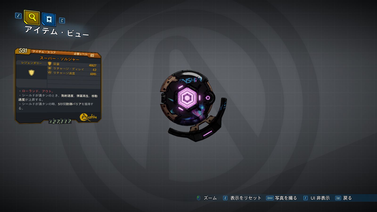 カテゴリ:アイテム シールド レジェンダリー アンシン ディレクターズ・カット