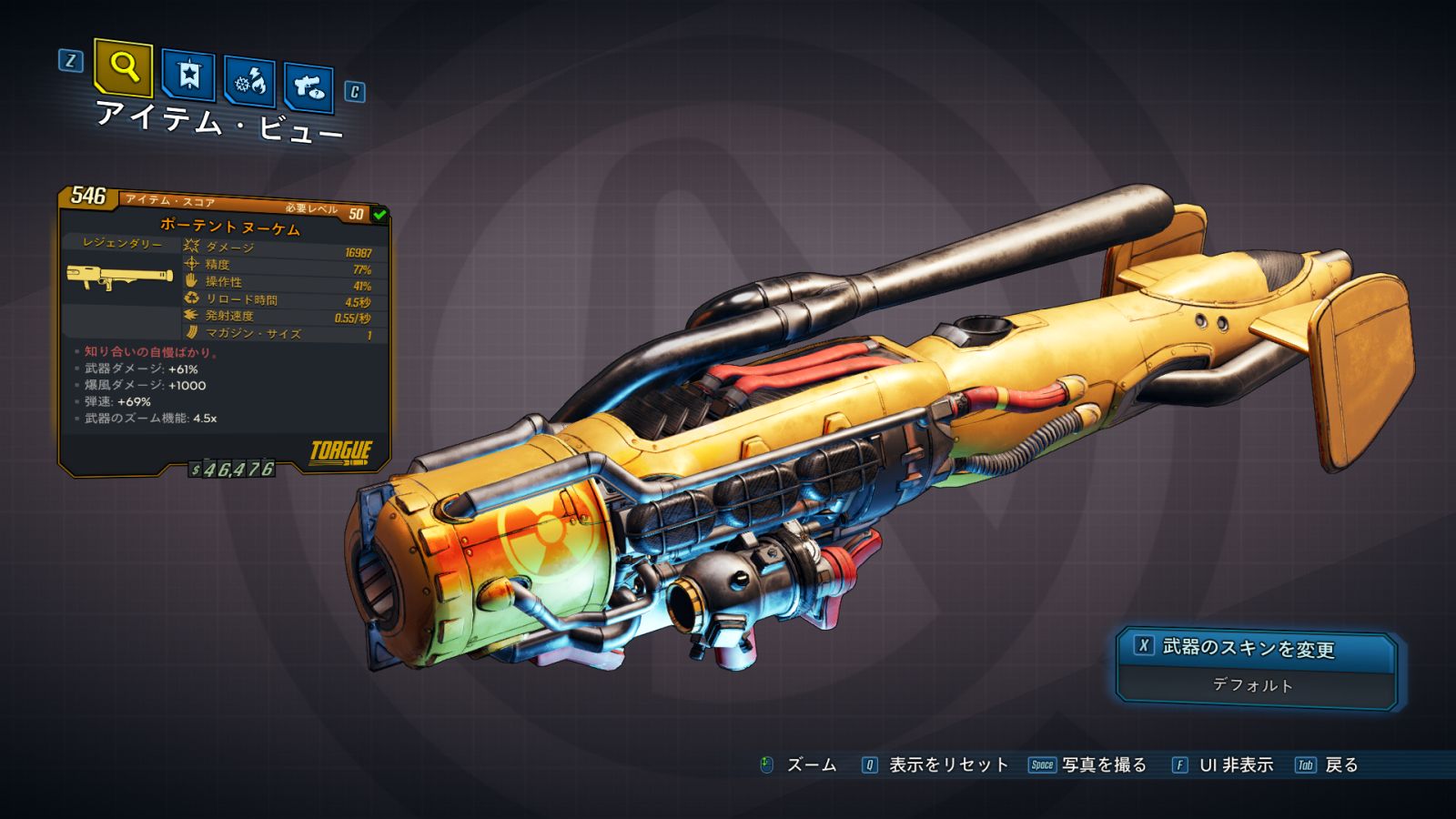 | ・武器ダメージ: +0~69% ・爆風ダメージ半径: +1000~1200 |