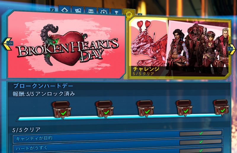 『ボーダーランズ3』シーズン・イベント第2弾 & バレンタイン・イベント、「ブロークンハートデー ~ハートのかけらを集めよ!」の専用ページです。