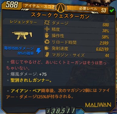 マガジンを10発以上まで拡張してやると連射が効かないため割と撃ち続けられます。使用感は兎に角火力不足。敵集団にダメージをばらまくのは楽しいのですが、如何せんアーマーの敵が辛すぎます。