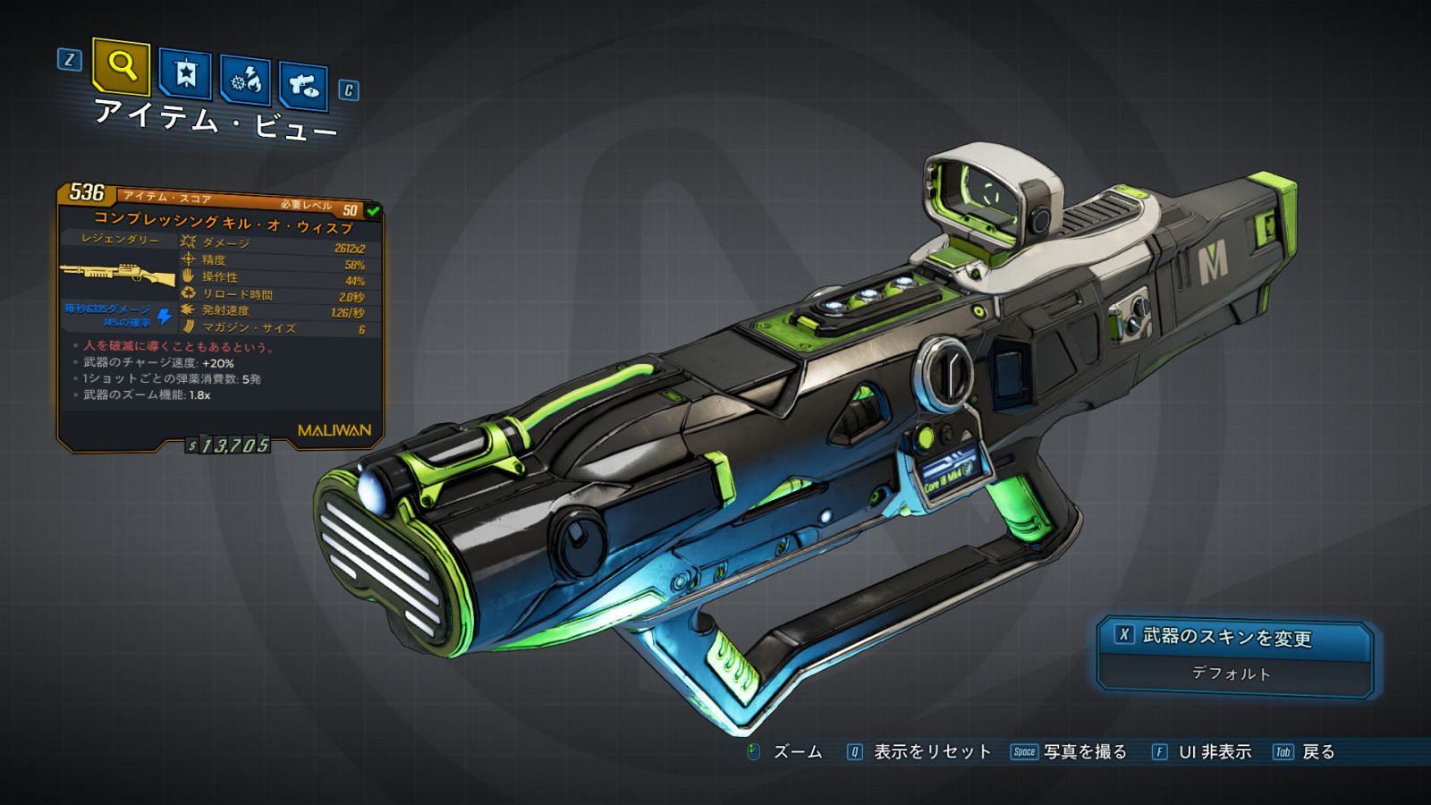 | ・武器のチャージ速度: +% ・1ショットごとの消費弾薬数: 4発 ・シールドに対して非常に効果的。 |