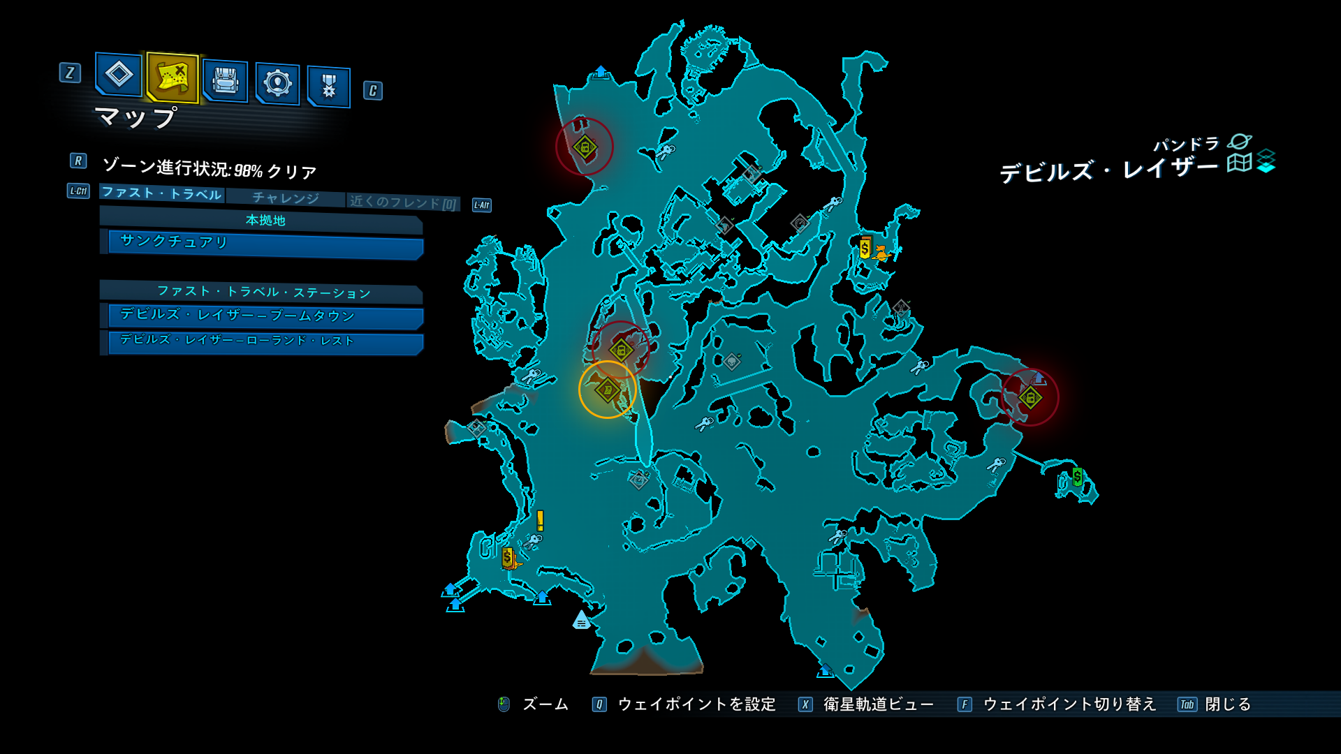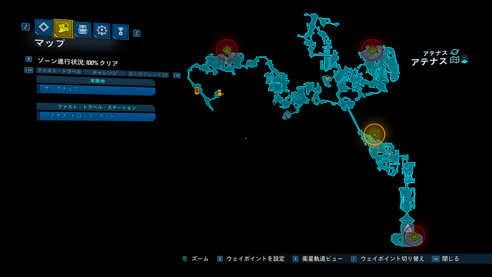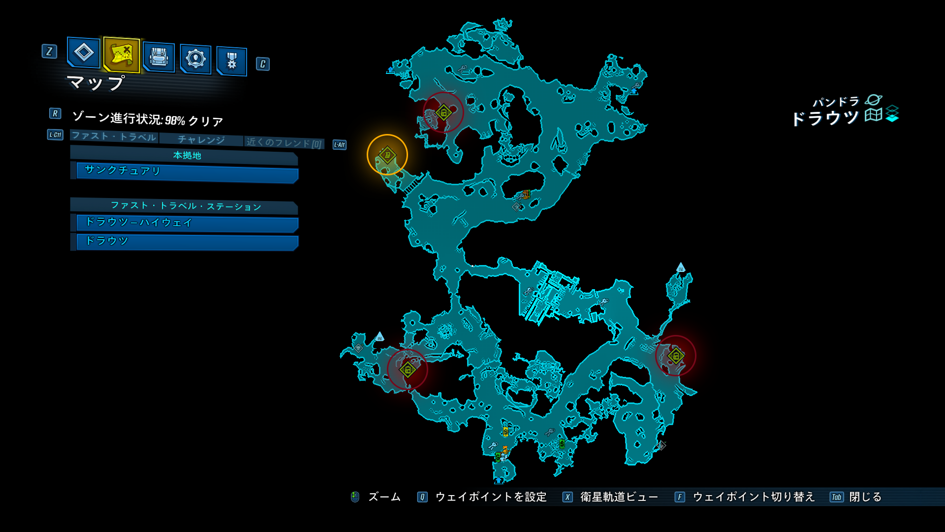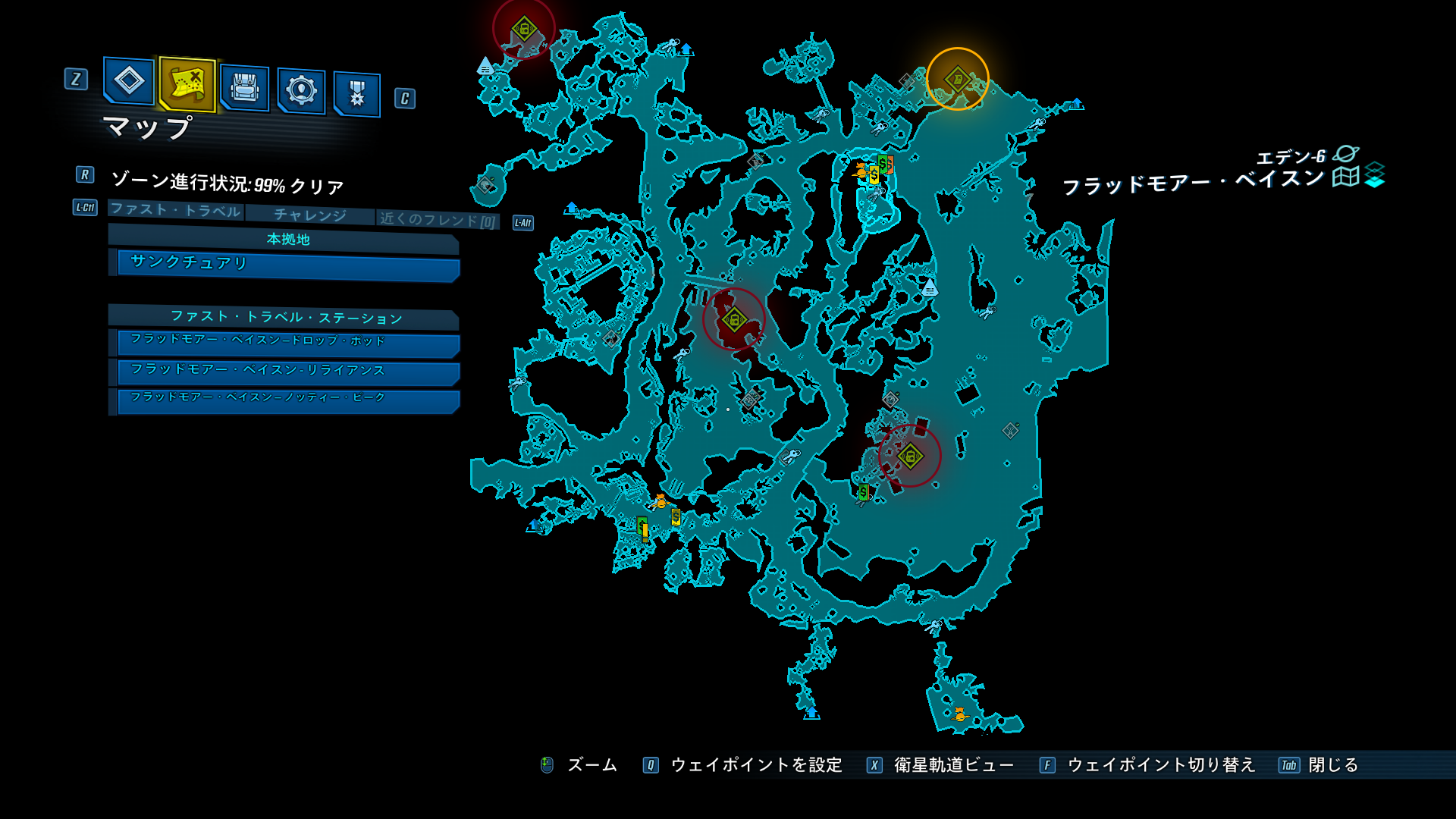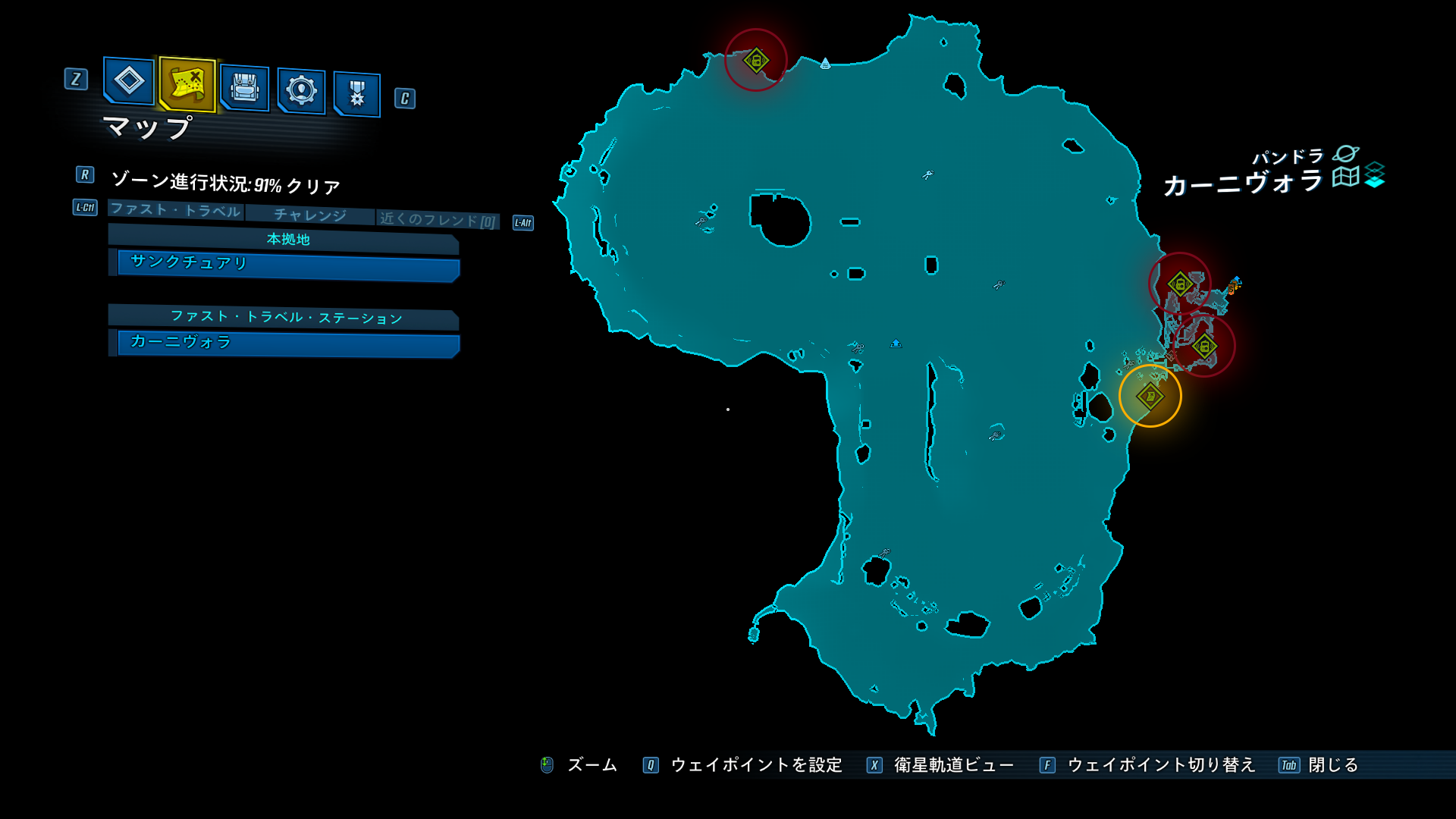 - 各ゾーンに伝説のヴォルト・ハンター「タイフォン」が残した日誌が3つあり、全て回収するとタニスがお宝の場所を割り出してロックを解除してくれる。
