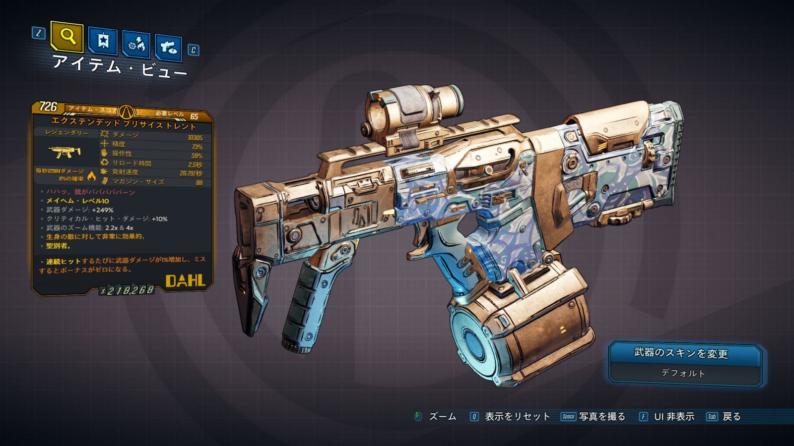 カテゴリ:アイテム 武器 サブマシンガン レジェンダリー ダール ワールドドロップ ディレクターズ・カット