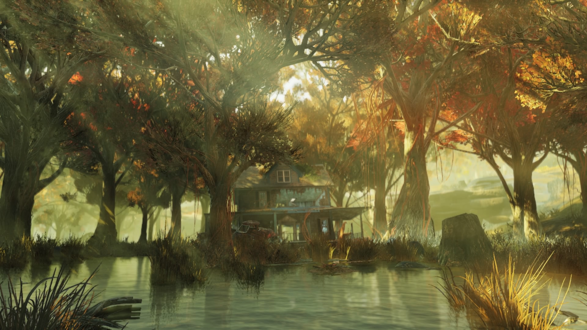 沼地地帯の他の多くの場所に同じく、“何かが出そう”な雰囲気を濃厚に漂わせる場所で、また沼地地帯の他の多くの場所に同じく、天気しだいで覆う木々から射し込む木漏れ日が水面を照らす大変な美観をたたえる場所となる。