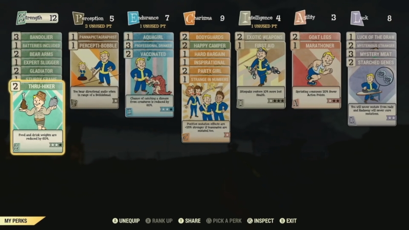 | Pack Rat | 7 | 1 | ジャンクアイテムの重量が25%軽くなる |