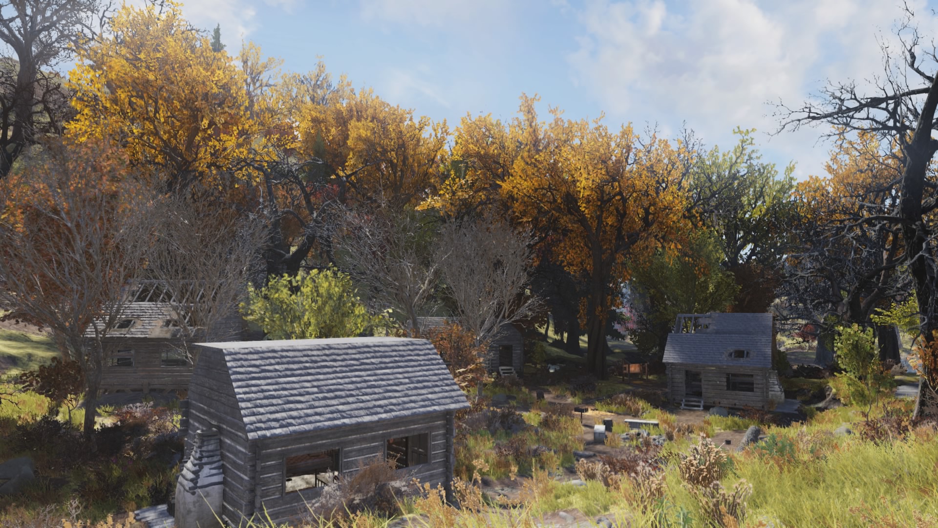 林に囲まれた4つのログハウスからなるキャンプ場で、それぞれの建物内にベッド、各種アイテムやジャンクが散在。作業台の類は存在しないが、ウォーターポンプが屋外にある。フェラル・グールやモングレルなどが出現。