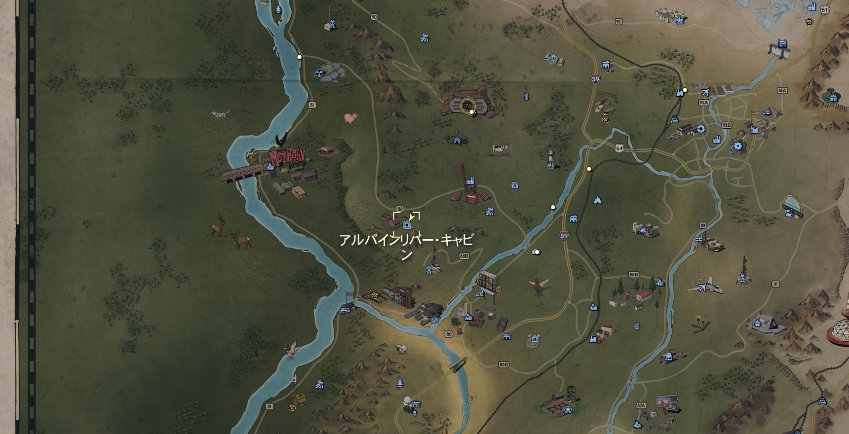 ログハウス内にゲイブ・ラムゼスなる人物のホロテープ「アルパインリバー・キャビンの苦情」とバックなる者のホロテープ「リタ - ファイヤーブリーザー」が置かれているほか、屋外にメモ「アルパインリバー・キャビンのゲストブック」。