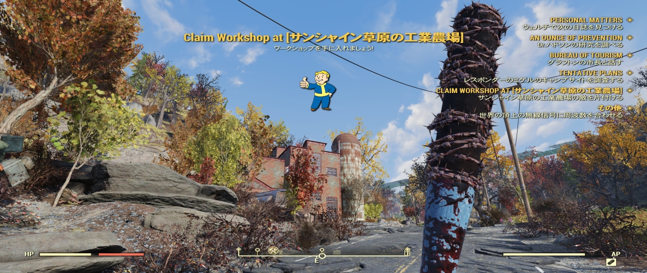 所有者のいないワークショップに近づくと「Claim Workshop at [ロケーション名]」というクエストが開始される。