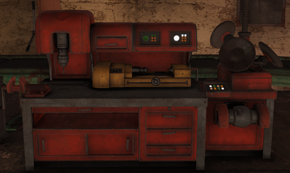 超大型採掘機(バケットホイールエクスカベーター)をそのまま使えるワークショップ。中にあるターミナルからクエスト「Earh Mover」を開始でき(繰り返し可)、30分で核物質やブラックチタン、その他様々な鉱石を掘り出してくれる。